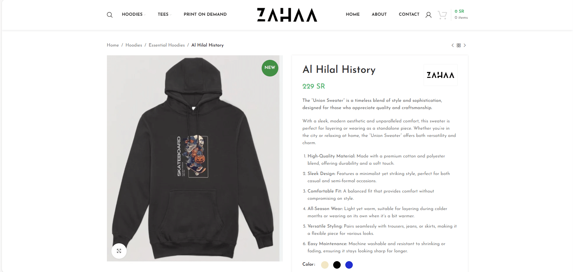 We developed a sophisticated, high-end ecommerce platform for Zahaa, centered around luxury aesthetics and intuitive shopping. Our goal was to highlight the brand’s elegant abayas, dresses, and premium collections through a visually rich yet seamless user experience. By blending elevated design with smooth functionality, we helped Zahaa strengthen its online presence, increase customer engagement, and provide a shopping journey that matches the premium feel of the brand.